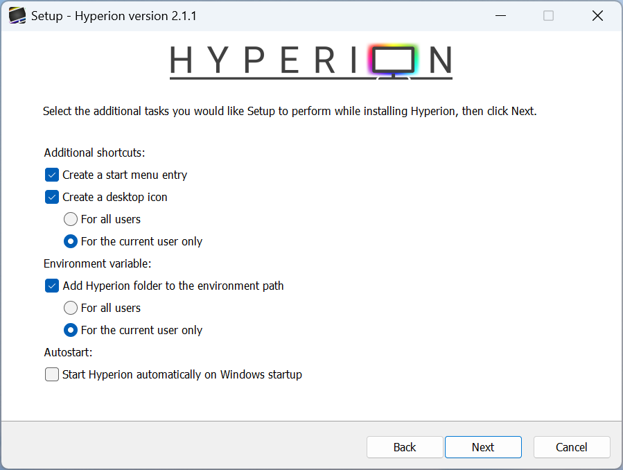 Confirm there's a Hyperion icon in your system tray